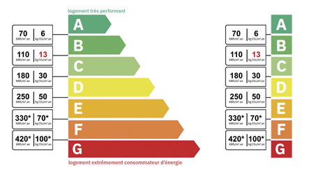 Le DPE attribue une double étiquette (de A à G) :